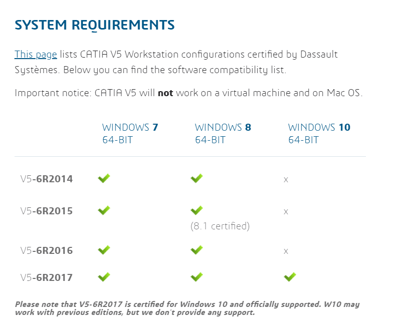Nota: Para que no haya problema a la hora de instalar el software en tu ordenador debes saber que CATIA solo es compatible con Windows 7, 8 ó 10. Windows 11 está en modo de pruebas y su funcionamiento con CATIA no está garantizado. CATIA V5-6 no es compatible con Mac OS ni tampoco dentro de maquina virtual que emule el sistema Windows.