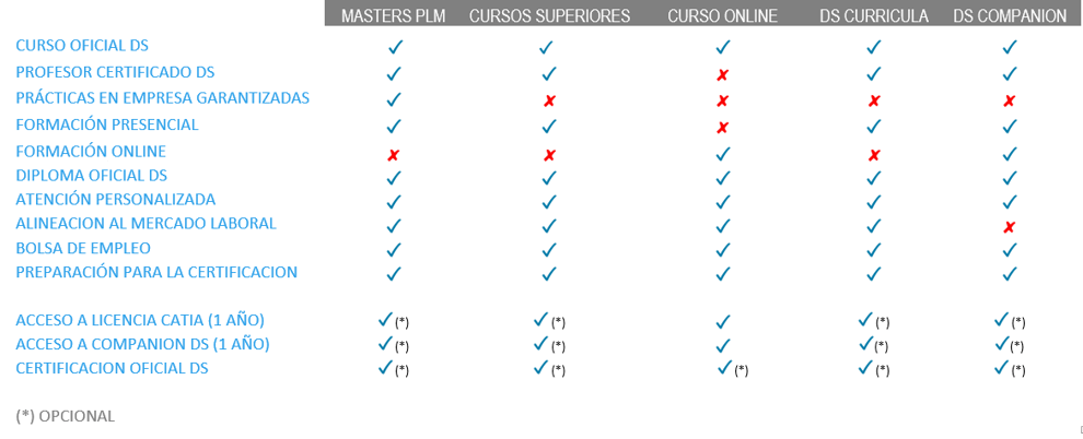 ¿No sabes qué curso elegir? mira nuestra tabla y compara nuestra oferta formativa: